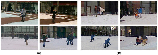 Pictures of staying behaviors: (a) taking photos; (b) playing with snow.