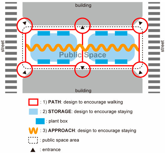 In the 1950s, new urban development in the form of rapid economic growth, industrialization, and the spread of automobiles led to physical and psychological problems related to the urban environment. Around the 1960s, growing alarm over modernist urban planning that heavily prioritized automobile traffic led to calls for more public space and urban amenities for pedestrians. This led to various movements and academic studies on public space. For example, Alan Jacobs established several urban planning principles by organizing the relationship between the values of urban life and the quality of urban spaces that had been discussed in the past. In this way, he developed a systematic approach to understanding public space and life [1,2]. Meanwhile, Jan Gehl, a pioneer of public space studies, defined place in terms of protection from the negative aspects of climate and exposure to the positive aspects [3,4,5]. In recent years, it has been pointed out that with the acceleration of urbanization and the increase in population density around the world, people have become increasingly lonely and depressed. Therefore, there is a growing need for people to spend time with each other and relax in public spaces. Sim [6] has proposed the concept of the “soft city”, which represents a gentle, human-oriented alternative to contemporary urban problems. He has offered concrete measures to make public spaces attractive places where people can live in harmony with the climate. Since the 1960s, public space research has been conducted from a variety of perspectives. The following section summarizes the breadth of public space research while focusing on the relationship between the three major perspectives: “space design”, “environment”, and “people”.