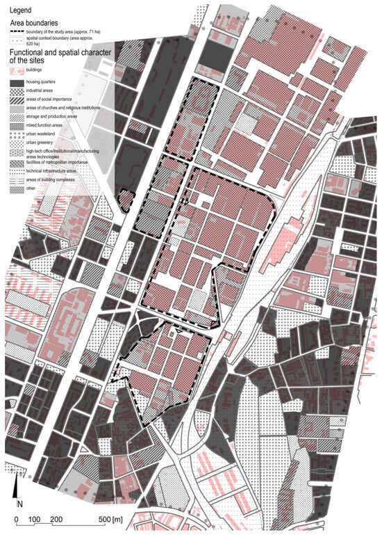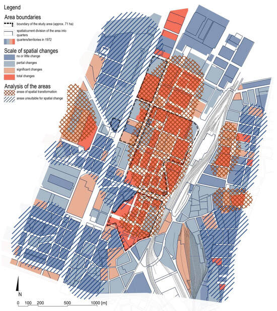 Post-industrial urban areas, which are very much a neighbourhood of residential areas, are characterised by a high susceptibility to variability in the functional and spatial structure and, consequently, the urban landscape. There have been many restructurings of post-industrial areas in recent years, which have significantly transformed large urban fragments. A form of mixed land use, following the transformation of urban wasteland, will be dominant in light of shrinking land for new development. For the condition of cities, the question of sustainability and the resilience—i.e., the stability—of the urban structure and its areas is essential for several reasons: the fulfilment of basic criteria of functionality (1), the preservation of environmental stability and sustainable management of urban areas (2). and the sense of place and the establishment of its identity, which is perpetuated over time, building the dependence of the inhabitants on the place and co-creating the urban heritage (3). The loss of the above foundations determines the need for change.