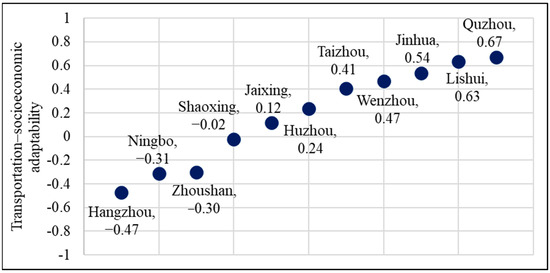 Unveiling Transportation Socio-Economic Adaptability Using a Node–Place Model: A Case from Zhejiang Province, China