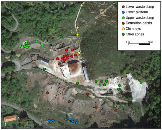 As described above, the As and Hg concentrations in the soils in different parts of the site are clearly related to the mining activities developed over the life of the mine. The paragenesis of the ore deposit is composed of cinnabar, orpiment, realgar, pyrite (usually with high concentrations of As), arsenopyrite, marcasite, and pararealgar in a gangue of quartz and calcite [32].