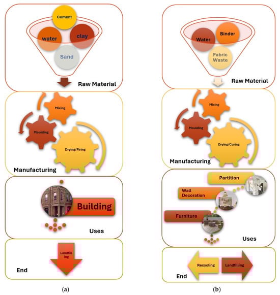 3.3. Qualitative Life Cycle Overview for Traditional Bricks and Textile Bricks