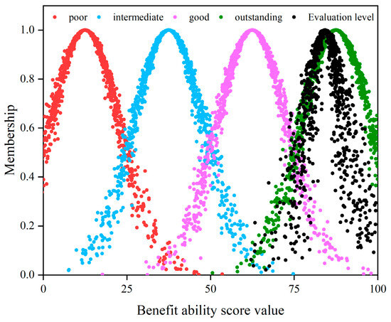 Finally, the evaluation level is judged based on the similarity between the evaluation object’s comprehensive cloud and the clouds of the different evaluation levels set. Based on the principle of maximum similarity, the final evaluation result level can be determined.
