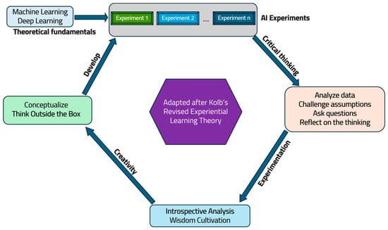 Experiential learning holds significant importance in education due to its ability to actively engage students in the learning process, leading to the enhanced understanding, retention, and application of knowledge [18]. By involving students in hands-on experiences, simulations, and real-world applications, experiential learning goes beyond traditional passive learning methods, such as lectures and readings. This approach allows students to connect theoretical concepts to practical situations, fostering critical thinking, problem-solving skills, and creativity. Additionally, experiential learning promotes a deeper level of understanding and long-term retention of information by immersing students in meaningful learning experiences. Experiential learning plays a vital role in preparing students for real-world challenges, equipping them with the skills and knowledge needed to succeed in their academic and professional endeavors. Morris [19] conducted a thorough examination of Kolb’s experiential learning model [20], highlighting the need for empirical testing and potential revisions to enhance its applicability.