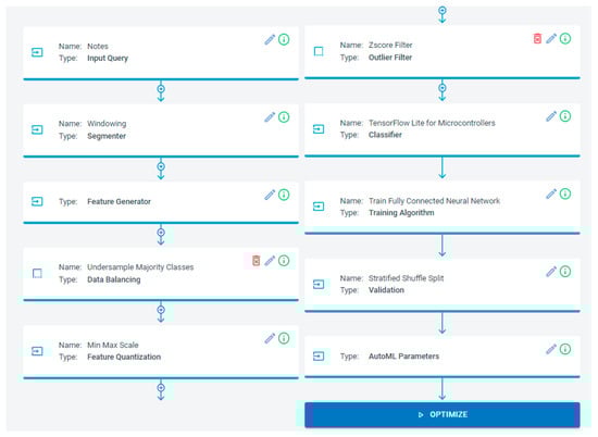To build a classification Deep Learning model, a Tensorflow Lite pipeline for Microcontrollers was implemented.