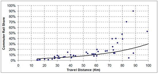 Travel Distance versus Commuter Rail Share [39,40,41,42].
