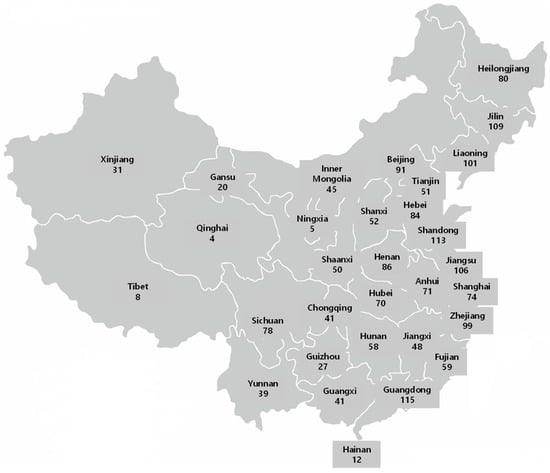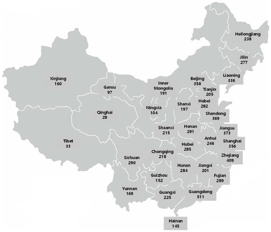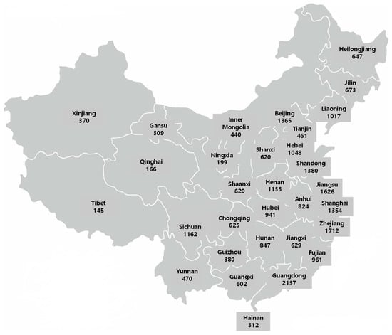 Number of Baidu Searches for ‘Korean Drama’ by Province in 2020 (Unit: Case). Source: Author’s calculation using Baidu Index data [].