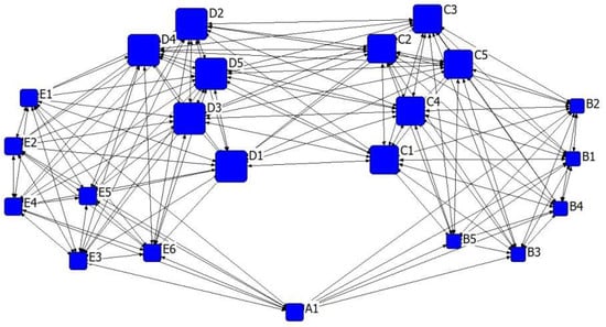 In order to determine whether there is a learning relationship between two suppliers, we consider whether the suppliers are on the same level or on adjacent ones; if the suppliers are on the same level or adjacent ones, a learning relationship exists; otherwise, a learning relationship does not exist. Utilizing the UCINET 6 software yields the SCL network as depicted in Figure 2.