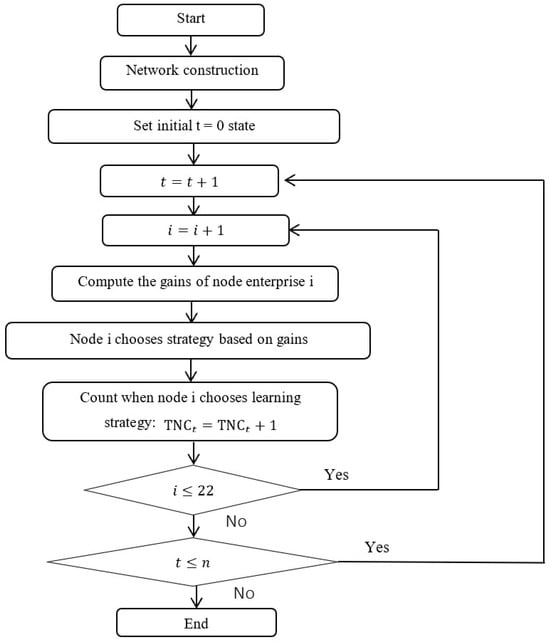 In this equation, represents the number of enterprises participating in SCL in the t + 1th game round, and represents the probability that node −i adopts the learning strategy with node i.