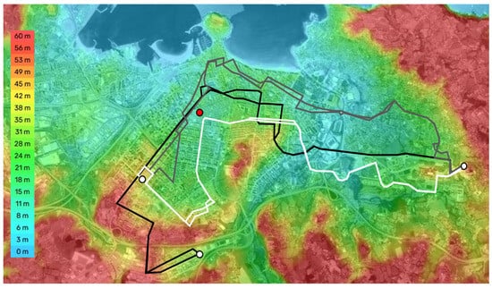 2]. However, as in a large majority of cities, the use of electric buses is still in a testing stage. Although, compared to other cities in the region, Gijón does not have a pronounced relief, there is an appreciable difference in altitude between the center of the city, close to the coastal façade, and the southern periphery with an altitude exceeding 60 m above the sea level.