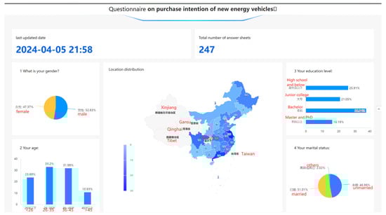 This questionnaire is divided into two parts. The first part is the basic information of the respondents, and the second part is a survey of the factors that influence the respondents to purchase new energy vehicles. The scope of this survey covers Beijing, Shanghai, Jiangsu Province, and other regions in China, and a total of 265 questionnaires were collected. In order to ensure the validity of the questionnaire, this article eliminated questionnaires with incomplete answers and obvious logical errors and retained 247 valid questionnaires. The detailed results of the questionnaire are shown in Table S1.
