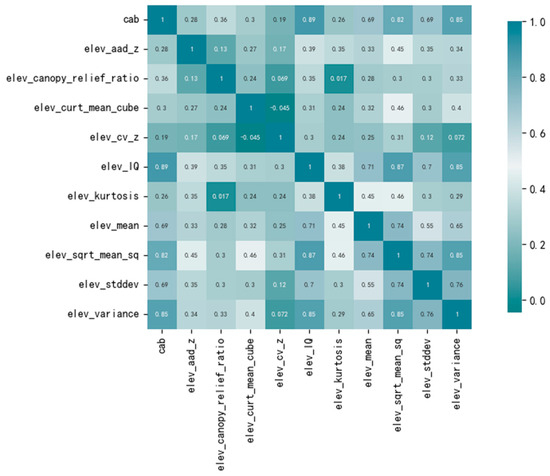 LiDAR is an active remote sensing technology that uses short-wavelength laser pulses to penetrate forest canopies and obtain vertical structure information [35]. In contrast to Zhou et al. [36]’s study on categorizing feature variables based on the Random Forest algorithm and the SCC method, this study compares the effectiveness of an integrated algorithm of gradient boosting by iteratively training a series of weak learners and combining them with a statistical approach based on monotonic equations evaluating correlations of multiple statistical variables for the preferential selection of feature variables.