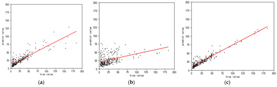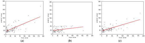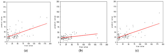 Schematic diagram of the fitting effect of Spearman’s Correlation Coefficient method on the test set. (a) Testing effect of the Bagging method; (b) testing effect of the KNN method; (c) testing effect of the Random Forest method.