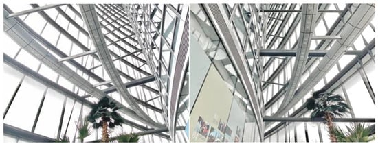 The project adopts a double-skin curtain wall system as the main exterior enclosure structure. The double-skin curtain wall forms a buffer zone of approximately 60 m in each zone (14 floors), providing both a courtyard landscape for indoor users while reducing the impact of the outdoor environment on the indoor environment, thus reducing the load on air conditioning and heating [21] (Figure 6).