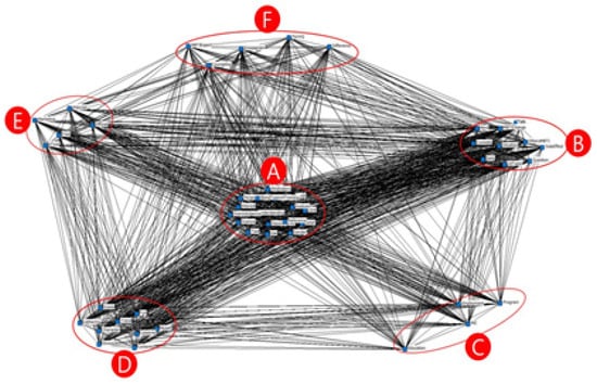 The CONCOR analysis was employed to group keywords highly relevant to MBTI based on correlation and structural equivalence. CONCOR analysis is a type of cluster analysis that consolidates closely related nodes into one cluster by considering the relationships between nodes in similar positions within the overall network structure [57]. The outcome of the CONCOR analysis revealed six clusters, as illustrated in Figure 3, and the cluster names were assigned considering the relationships among equivalent words grouped in each cluster (Table 5).