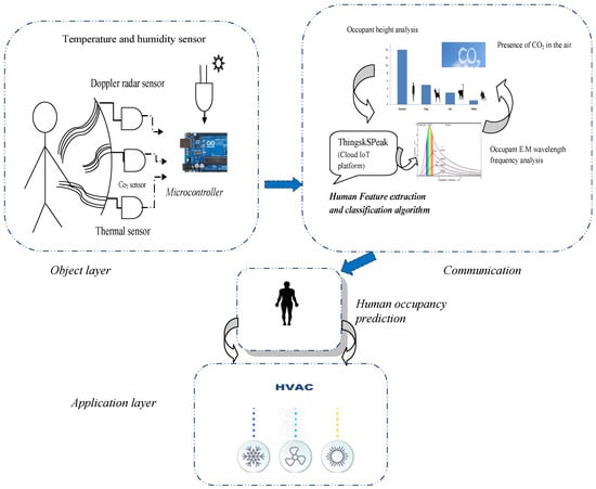 | [3] | Optical and infrared cameras | 65% prediction accuracy and 40% energy saving | The object should be within a range of 5 m in a straight line; sensitivity; dark/night scene limitation. | Prone to overlap/being covered by an obstacle; no feature extraction or classification. | - The model can be simply improved to recognize human occupancy through their indoor behavior or activities. - Availability of datasets for research communities. |