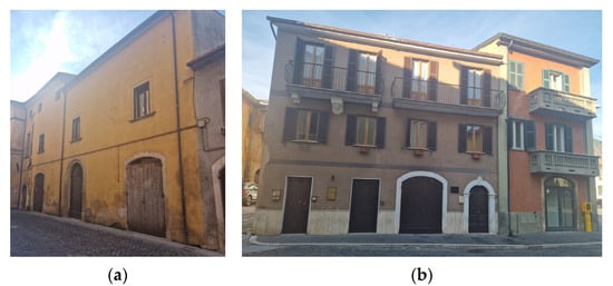 Examples of buildings in aggregate configuration belonging to the (a) “BT 1” typology and (b) “BT 2” typology.