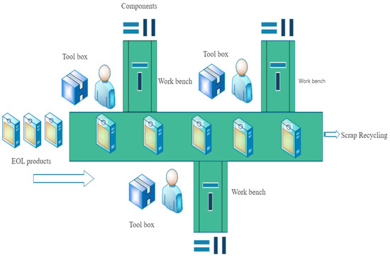 An array of disassembly methods exists, encompassing complete and partial disassembly, along with both destructive and non-destructive approaches [4]. Different disassembly lines, such as linear, bilateral, parallel, and U-shaped configurations, offer distinct approaches, each with its own implications for sustainability. Designing specific disassembly lines for different facilities facilitates the examination of balancing problems while ensuring that sustainable practices are upheld throughout the process. Currently, there is widespread exploration of mixed lines across various sectors of society, reflecting the growing recognition of the importance of sustainability in industrial practices. Given the diversity of recyclable products and the imperative to enhance disassembly and recycling practices, the implementation of mixed disassembly line methods, integrating linear and U-shaped configurations, has gained traction. This endeavor aims to better serve society, purify the environment, and contribute to the establishment of a green ecosystem, aligning with the overarching goals of sustainable development and promoting a circular economy model.