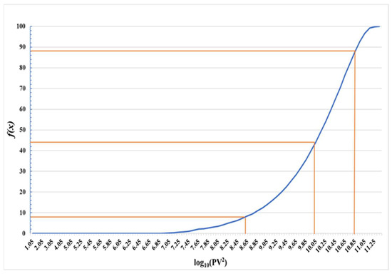 10. Figures illustrating the cumulative frequency distribution graph with log10(PV