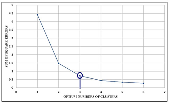 Figure 6 clearly shows that the optimum number of clusters based on the data was three. As only three optimum clusters were effective for analysis based on the three clusters, four levels of severity were assigned, namely high risk, medium risk, low risk, and very low risk. The severity level was decided based on the facility assigned at different stages of the PV