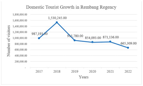 Domestic tourist growth data of Rembang Regency, 2017–2022 [4].