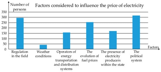 - Identifying respondents’ opinions regarding methods considered useful for reducing electricity consumption and associated costs. For this item, respondents had the opportunity to choose one or more responses from the provided options: choosing a different electricity provider, selecting an offer suitable for consumption needs, replacing electrical appliances and electronics, using an energy management system, or using alternative sources of electricity.