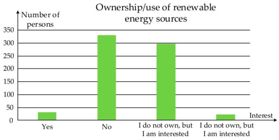- Regarding whether they owned or used renewable energy sources, respondents had to choose one of the following options: yes, no, I do not own but I’m interested, or I’m not interested;
