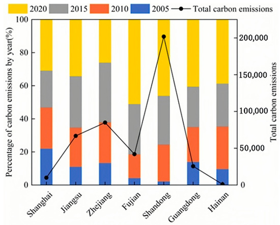 - According to the IPCC emission factor method, spanning the years 2005 to 2020, the cumulative carbon emissions from the construction industry in the seven provinces and municipalities under scrutiny exhibited an escalating trend, surging from 310 million tons to 1.72 billion tons. Among the individual provinces and municipalities, Shandong Province emerged as the foremost emitter of carbon emissions from the construction sector, while Hainan Province registered the lowest emissions.