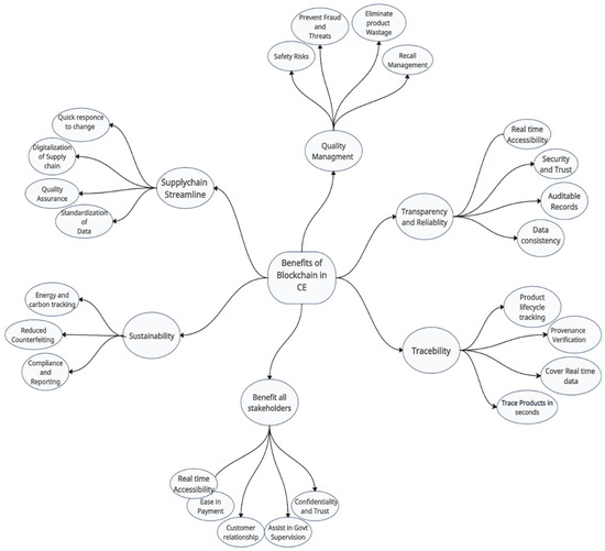 Supply chain management and quality management are the most crucial factors that favor the BC implementation in industries and are the last 2nd order themes of this section. In supply chain, BC enables us to respond quickly to any change and helps in digitalization and data standardization. Recall management, prevention of threats and frauds and eliminating waste are the most important benefits that BC serves in quality management for a sustainable economy [81]. The benefits of BC in industries are also shown in the thematic map in Figure 10 below.