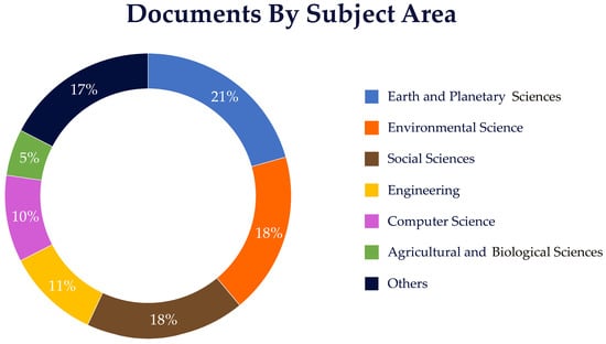 Further analysis shown in Figure 3 revealed that research in this field spans various subject areas, with Earth and Planetary Sciences, Environmental Sciences, and Social Sciences comprising significant portions of the literature. This interdisciplinary approach underscores the complex nature of natural hazard management and the diverse perspectives required for practical solutions.