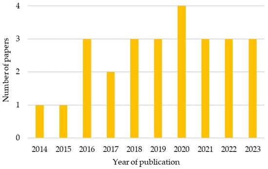 Throughout such a process, papers cited in review papers were also revised, which, being in the scope of this research, could be included in the sample. From the 181 remaining papers, 26 papers were included in this study, all published between 2014 and December 2023 (Figure 1) in different journals and proceedings, and considered due to their relevance in the computer area.