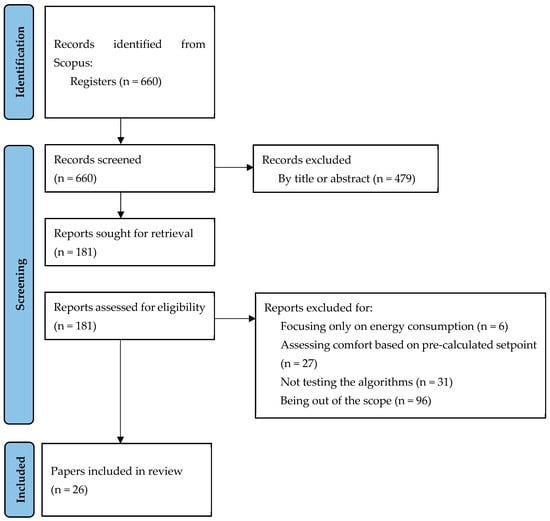 Machine learning has been addressed in reviews about thermal comfort [,,,], control of HVAC [,,,] and lighting systems [,,,], and occupant-centred control overall [,]. Moreover, reviews that address machine learning specifically bring together the authors who have used this approach to predict occupation [,] and windows opening [], improve different aspects of lighting (technologies, efficiency, security, comfort) in in- and outdoor environments [], create personalised thermal comfort models [] and analyse the impact of thermal comfort on users’ cognition, work and health []. For example, Han et al. [] reviewed the use of reinforcement learning to maintain occupants’ comfort in buildings.