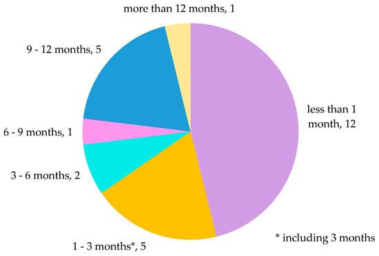 The studies’ durations had significant differences, as shown in Figure 4. Among the ones with a larger span, four used the simulation approach. One of them is a three-year study that assessed the use of HVAC, lighting and shading systems under many circumstances. Another one was the first paper published on this topic [] and one more was published in proceedings [], both within 12 months. The others implemented and assessed control in real systems [,,]. Tekler et al. [] collected data for ten days and used the information to simulate a whole year. Among the studies of shorter duration, three were carried out through simulation [,,]. The biggest advantage of simulation is the possibility of assessing different scenarios, test strategies and approaches. Nevertheless, it is not possible to analyse a system’s performance with real users, daily. It is not possible for the users to give an opinion about the system or indicate if they are satisfied or not, and the reasons for that either.