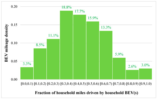 Fruitful avenues for future research include applying our approach to other datasets collected at different points in time and in different parts of the world to monitor how much BEVs are driven as battery technology improves, the charging infrastructure expands, fast-charging becomes more common, and BEV prices reduce. Some of these datasets will hopefully include data about attitudes and possibly have a panel structure to capture change and help remove unobserved variables. Another promising area of research is to explore how BEVs fit with other household travel modes, including transit and active transportation. Future research could also examine detailed trip purpose as a more diverse set of households gains access to BEVs and explore who benefits most from replacing diesel trucks with zero-emission heavy duty vehicles. More generally, more research is needed to understand how market incentives could best be used to foster the adoption of BEVs (e.g., see [71]), quantify the environmental benefits of BEVs [72], plan the expansion of the charging infrastructure (e.g., see [73] for fast-charging, or [74] for electric roads), and explore how BEV use could interact with the electric grid [75]. Qualitative analyses via interviews of focus groups (e.g., see [76,77]) could provide some useful starting points before undertaking quantitative analyses.