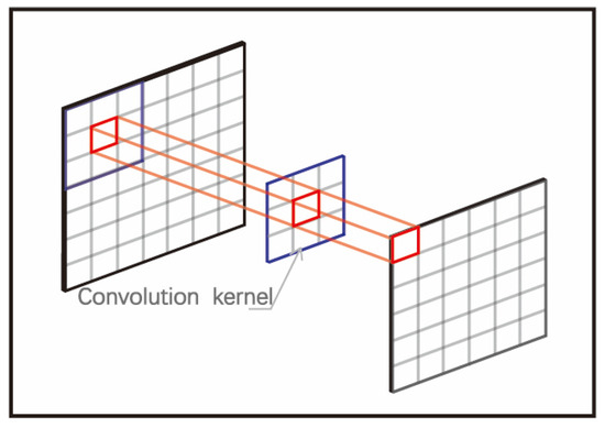 The summation part of Equation (1) is equivalent to solving a cross-correlation. b is the amount of deviation. Zl and Zl+1 denote the convolutional input and output of layer l + 1. Ll+1 is the size of Zl+1. Z(i,j) corresponds to the pixels of the feature map. K is the number of channels of the feature map. f, , and p are convolutional layer parameters corresponding to the convolutional kernel size, convolutional step size, and number of filled layers. A schematic diagram of the convolution operation is shown in Figure 1.