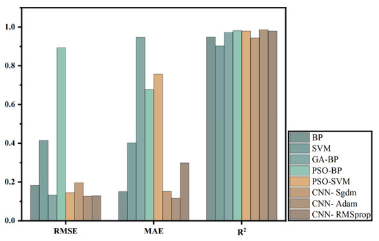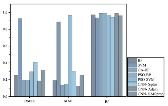 At the level of data-driven model evaluation, root mean square error (RMSE), mean absolute error (MAE), and coefficient of determination (R2) are selected as the evaluation metrics of the results in this paper. Where R2 shows the degree of deviation between the predicted and actual values of the model, the closer R2 is to 1 (indicating that the direction between the predicted and actual values is more similar), the better the prediction effect. MAE and RMSE reflect the predictive accuracy of the data-driven model, with smaller values corresponding to a better predictive performance. Meanwhile, the various data-driven models analyzed in the article’s study, as well as the construction of the various models, were analyzed and completed via Python (version 3.11) software.