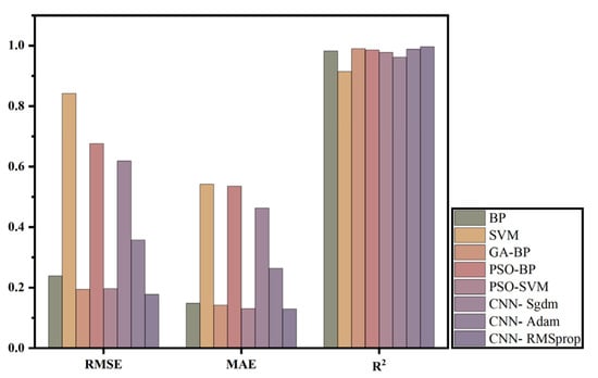 When using physical models of building performance for analysis, traditional processes typically calibrate the model to match previous data through statistical inversion strategies. To reduce such errors between the model and the observed data, this matching process is time-consuming and costly, while, at the same time, most building performance simulation software is computationally intensive [80,81]. The resulting emergence of data-driven models can significantly reduce the cost of time. Data-driven modeling represents a form of fast execution of calculations with an accuracy close to that of dynamic simulation. It helps decision-makers to quickly examine high-dimensional performance simulations and immediately derive solutions under various constraints. Therefore, the deep learning model used in this paper can effectively solve the problem of high time cost. Currently, the commonly used learning algorithms in the field of building performance prediction and optimization are RNN, LSTM, and GAN, while CNN is less used in this field. CNNs are highly adaptable in terms of local feature capture performance. It can be used in the field of building performance by constructing high-dimensional features, which can effectively learn the relationship between the nonlinear interactions among the variables affecting TEUI, GWP, and LCC. In this paper, eight data-driven models are used to analyze and optimize building performance objectives; these eight data-driven models are Backpropagation network (BP), Support Vector Machine (SVM), Genetic algorithm-based optimized BP neural network (GA-BP), BP neural network based on particle swarm optimization algorithm (PSO-BP), SVM based on particle swarm optimization algorithm (PSO-SVM), CNN(SGDM) based on different optimizers, CNN(Adam) based on different optimizers, and CNN(RMSprop) based on different optimizers.