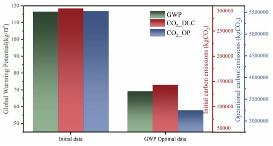 At the level of carbon emissions from buildings, excessive carbon emissions can lead to a sharp increase in greenhouse gases and waste of energy resources, which in turn can lead to building environmental problems such as the heat island effect. The issue of how to effectively reduce carbon emissions is critical to improving building performance [18,19,20,21,22,23,24,25,26,27,28,29,30,31,32,33,34,35]. For example, the following scholars have conducted relevant studies: Zhang et al. investigated the impact of three objectives, GWP, global cost (GC), and operational energy (OE), on the ability to optimize building performance. The article found that the use of meta-model optimization resulted in a reduction of 12.7%, 6.7%, and 7.4% in the three metrics, respectively [22]. Yu et al. optimized the design process by establishing a parametric optimization to minimize GWP, energy consumption, and life cycle costs (LCCs). The results showed that optimizing all variables can achieve good building performance results [23]. Wang et al. examined the abatement potential of HFC emissions. The results indicated that the total GHG reduction capacity by 2050 is approximately equal to 10% of the total carbon emissions from the Chinese construction sector [24]. Honarvar et al. examined the evolution of buildings over their life cycle, and the results showed that the environmental impact of new materials increases fivefold in terms of GWP. Additionally, according to the circular economy concept, 10% of old and 3% of new housing materials can be returned to the chain, which in turn can reduce the GWP of the building during the life cycle [26]. Zhang et al. examined the effectiveness of buildings in reducing emissions during energy efficiency retrofits. The results show that retrofitting existing buildings can reduce considerable CO2 equivalent and economic costs [27]. Wang et al. went on to improve environmental issues by examining building performance issues at life cycle costs. The results of the study showed that optimizing energy consumption, thermal comfort, and GWP using a multi-objective optimization algorithm can save the designer time and costs while reducing the range of alternatives [29]. Ansah et al. examined the impact of different façade materials on the environmental and economic costs of buildings in Ghana. The results show that stabilized earth block curtain wall is the most energy-efficient façade material with the highest potential for development, which can reduce GWP by 18.07% and LCC by 47.87% [30]. Javid et al. studied the impact of energy consumption and GWP on buildings. In their paper, economic cost and GWP are used as the optimization objectives, and the results show that the use of optimization can lead to a reduction of 17.79% and 20.8% CO2 equivalent for the two case buildings in the paper, respectively. In addition, buildings should be retrofitted from a life cycle perspective [32]. Hossain et al. studied the impact of building materials on GWP. The results showed that the construction of a 1 m hoarding produces three tons of CO2 equivalent GWP [34]. Van Ooteghem et al. conducted a life cycle perspective to investigate which part of the building’s structure would have the greatest impact on energy consumption and GWP. The results show that the building operation energy level is more influential, accounting for about 91% of the total energy consumption and 88% of the total GWP in terms of GWP [35].