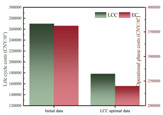 Incorporating buildings into the study of life cycle costs in turn improves building performance issues from the perspective of the whole-life economics of buildings [36,37,38,39,40,41,42,43,44,45,46,47,48,49,50,51,52,53,54,55,56]. The following scholars have studied how to make improvements at the LCC level: Lei et al. examined the application of green building design costs across the life cycle stages. The results showed that the cost of the operational phase of the building was the highest at 65.4% [36]. Kazem et al. went on to explore the effectiveness of energy efficiency retrofits in Cairo buildings through a whole-life-cycle cost analysis. The results showed that the most cost-effective façade retrofit was the installation of 1 m long external shading facilities, which reduced LCC by 1.4% and energy consumption by 18% [37]. Weerasinghe et al. went on to analyze the impact of green building costs in Sri Lanka by examining the life cycle costs of the building in its aspect. The results show that, although the initial construction cost of green buildings is 29% higher than that of conventional buildings, green buildings can save 23% and 15% of economic costs in the operation and maintenance phases, respectively, over their entire life cycle [39]. Yuan et al. examined how the performance of buildings changes by looking at energy savings and life cycle costs. The results showed that the 16 buildings corresponding to the use of the 16 envelope schemes met the green building evaluation criteria. At the same time, the article shows that life cycle costs rise as energy efficiency rates increase [43]. Xue et al. developed an LCA-LCC model by targeting building sustainability. The article’s research found that economic costs were highest during the operational phase of the life cycle and that ADP-fossil and GWP metrics were most prominent throughout the life cycle [45]. Dwaikat et al. studied the application of life cycle cost in the construction industry. The article showed that the future costs of the studied buildings were 3.6 times their initial investment and construction costs, also showing that energy consumption accounts for 48% of the total life cycle costs and that reducing energy consumption reduces the total life cycle costs [47]. Schwartz et al. investigated the impact of buildings on energy use by taking a life cycle perspective, and the article optimized the LCC and Life Cycle Carbon Footprint (LCCF) through a multi-objective optimization genetic algorithm. The results showed that LCCF and LCC could be reduced by this method [49]. Invidiata et al. analyzed four shading systems that affected the energy performance of buildings by looking at them from a life cycle cost perspective. The results showed that the use of wooden double-opening blinds and PVC roller shades was the most appropriate window shading solution, efficiently reducing the building’s energy consumption [50]. Abdallah et al. went on to reduce the life cycle cost of buildings by studying building optimization measures. The article proposed a model that identified the best building optimization measures and also significantly reduced the life cycle cost of a building [51]. Han et al. used numerical sensitivity analysis to understand the role of life cycle analysis (LCA) in building design. The results showed a significant correlation between energy modeling and life cycle costs. Also, wall assemblies had a much greater impact on life cycle costs than window performance [52]. Kneifel scholars have verified this by examining the effectiveness of new buildings in saving energy, reducing carbon, and lowering economic costs over their life cycles. Research results have shown that conventional technologies can reduce the energy consumption of new buildings by 20–30%, while the carbon footprint can be reduced by 16% [55].