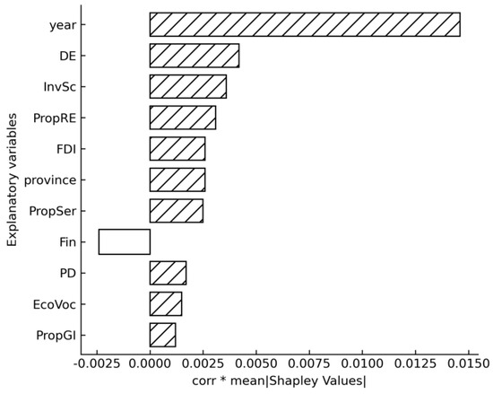 Random forest and other ensemble learning techniques offer distinct advantages compared to conventional methods. Firstly, prior studies have frequently relied on explanatory models that prioritize the selection of theoretical frameworks or emphasize particular value dimensions. This approach can introduce bias by incorporating preconceived theories, potentially leading to flawed causal inferences. In contrast, random forest algorithms do not necessitate the establishment of a predefined model structure, thereby mitigating the influence of preconceived theories on the model configuration and regression process. Secondly, the conventional approach to panel data analysis is centered on assessing the collective marginal influence of particular explanatory factors on the variables being studied. This approach lacks the adaptability to effectively address fluctuations in marginal impact. In contrast, partial dependency graphs offer a visual representation that distinctly illustrates alterations in the marginal impact of explanatory variables on the explained variables. This visual aid enables policymakers to monitor shifts in economic performance and formulate appropriate policy interventions. Thirdly, conventional panel data analysis techniques may not offer a comprehensive evaluation of the significance of explanatory variables, as the regression coefficients’ relative magnitudes in these models could primarily stem from differences in the units of the variables. Expanding upon the findings from the ensemble learning algorithm experiments, Shapley additive explanations can be employed to elucidate the model outcomes and assess the relative importance of the variables.