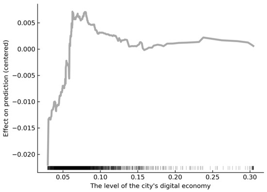 Partial dependence between response variable and digital economy using the bagging algorithm.