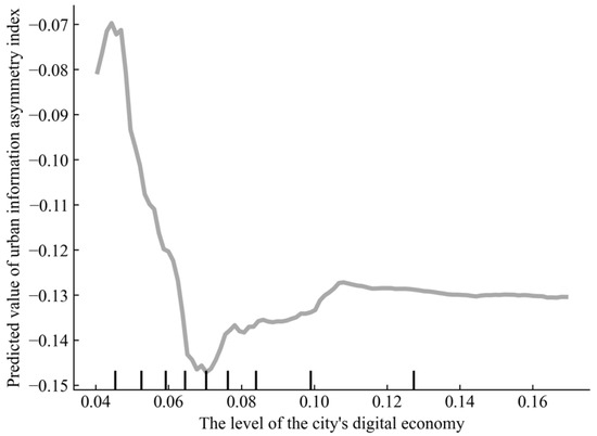 Finally, it is crucial to take into account the decreasing marginal efficiency while analyzing the facilitating function of the digital economy. From a social efficiency standpoint, the growth of the digital economy comes with expenditures, and the addition of a digital element may not always result in higher production or progress in sustainable development if marginal cost outweighs the marginal benefits. Security of information [30], digital monopolies [31,32], and data governance [33] provide challenges in the real-world implementation of digital economy growth, impeding progress towards greater economic efficiency and hindering the promotion of sustainable green development. Consequently, although the optimal digital economy is in accordance with Metcalfe’s law, the actual extent of digital economic empowerment is constrained by disparities in institutional contexts [10] and regional developmental frameworks [34].