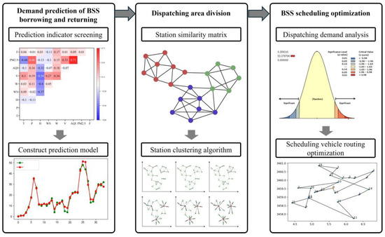 Therefore, this paper addresses the mismatch between PBS inventory distribution and the dynamic renting–returning of bicycles under traditional bicycle rebalancing schemes by constructing a real-time decision-making framework for public bicycle dispatch based on rental demand prediction (see Figure 1).