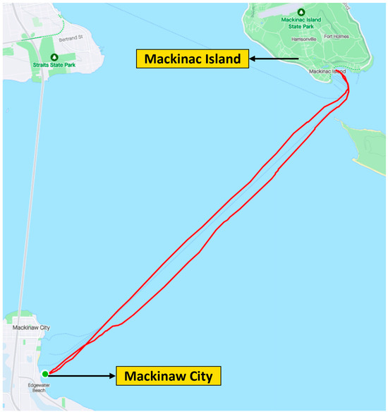 Ferry route from Mackinaw City to Mackinac Island captured using the Strava application.