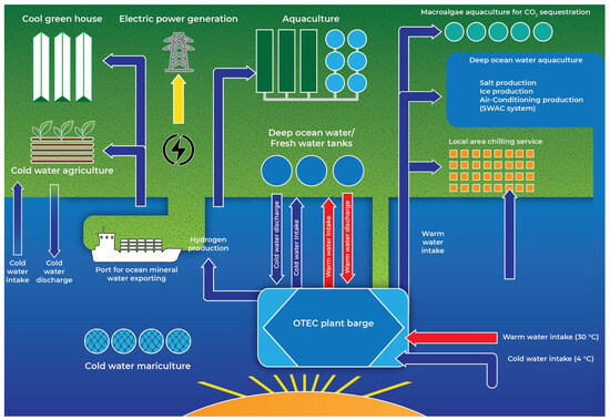 However, the economic benefits of OTEC remain extremely low. These technologies still face various research and development challenges if they are to become viable and competitive alternatives and allow governments to make regulations for their implementation. Integrative approaches that include seawater utilization systems for energy, water, and food would be a feasible strategy to improve the overall economy [85,86].