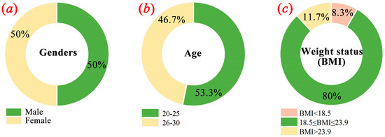 The basic information of the subjects: (a) Gender, (b) Age and (c) Weight status (BMI).