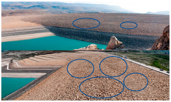 Obvious evidence of deformation can be seen on the riprap layers of the Lar Dam in Figure 5 and Figure 6.