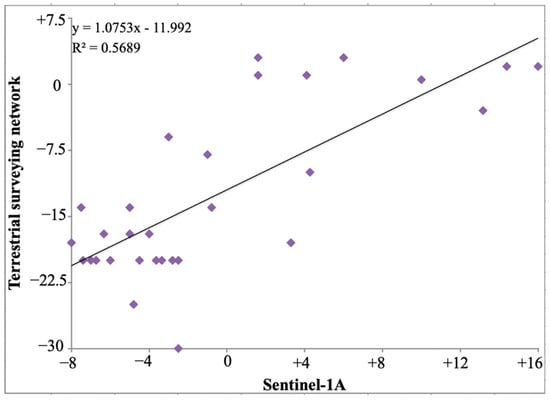 Linear regression between terrestrial surveying network and Sentinel-1.