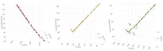 (From left to right) the Pareto fronts for tomatoes, onions, and cucumber optimal import networks.