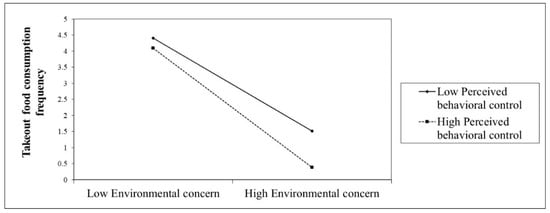 Perceived behavioral control strengthens the negative relationship between environmental concern and consumers’ take-out food consumption frequency.
